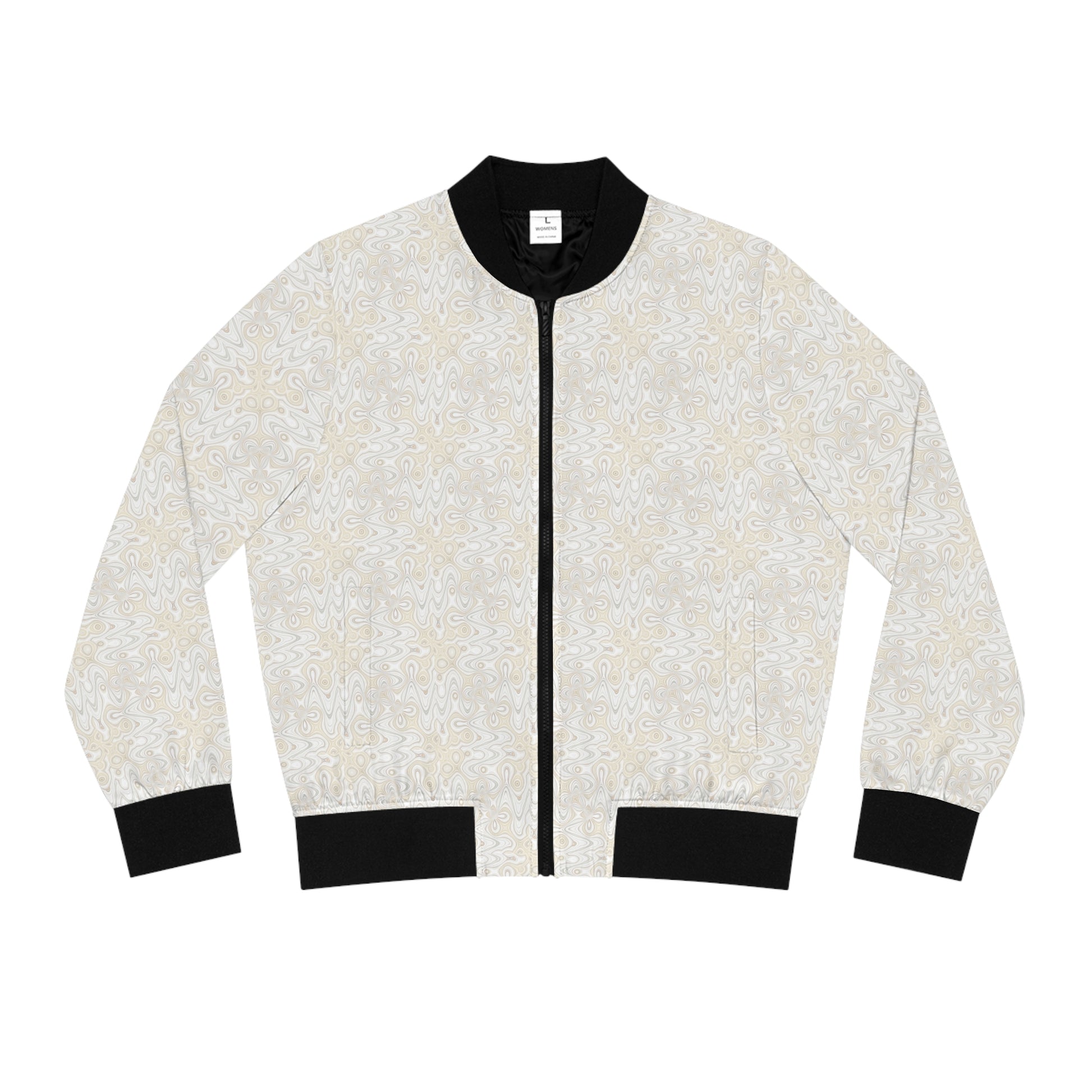 Few items are as iconic as the bomber jacket - and this one takes things to a whole new level. Featuring a stand-collar type, ribbed cuffs, collar, and hem, it's as durable as it's comfortable. Add your custom, all-over-print ideas to this women's bomber jacket and make it cute, badass, or both.
