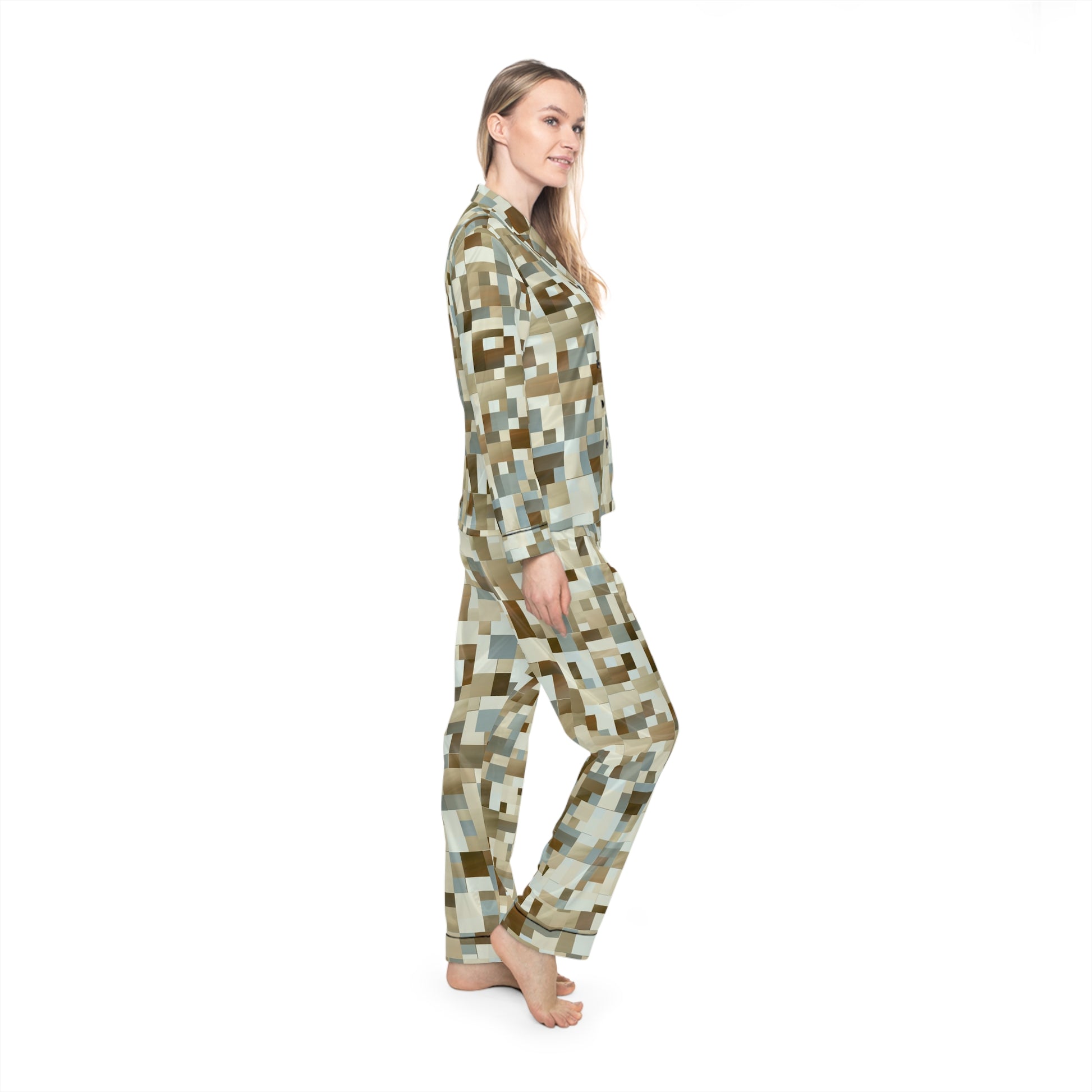 Enjoy the Southwest vibes with these Women's Satin Pajamas, featuring a drawstring waist for the perfect fit and a notch lapel collar for a classic look. Made of 95% satin polyester and 5% spandex, this pajama set is super soft to touch and lightweight, ideal for leisure or nightwear. The seam thread color is closely matched to the design, with trim, drawstrings, and buttons available in black.